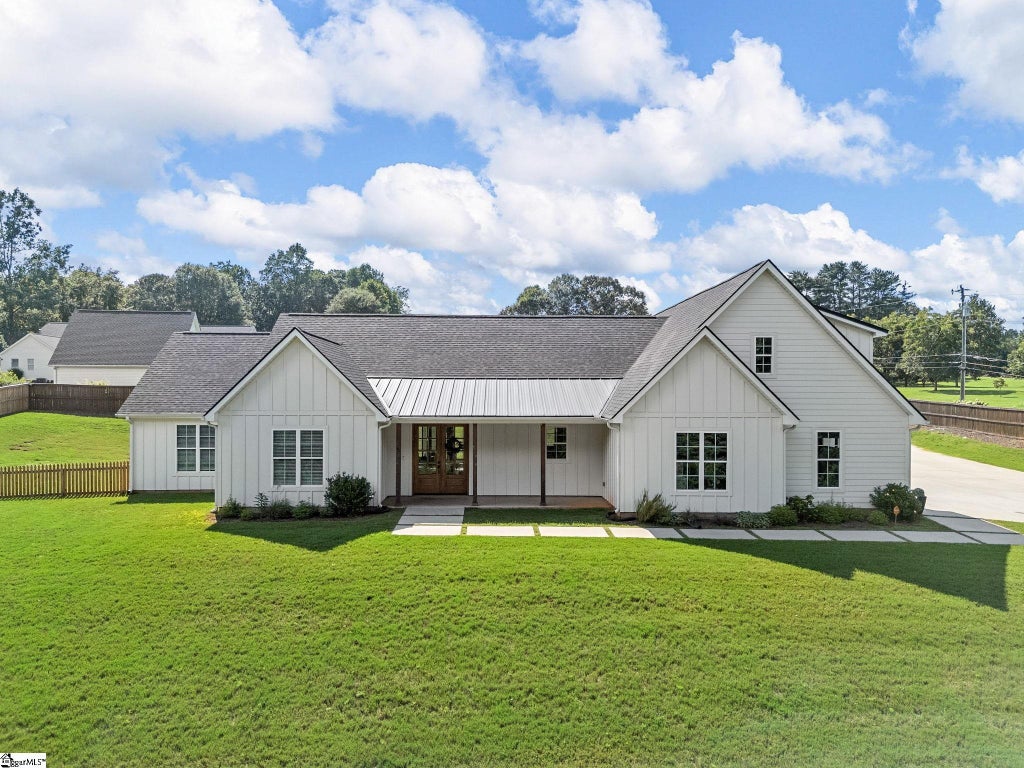 Are you looking for a stunning farmhouse in a great school district?? If so, then this is it! Nestled on a private road with a beautiful view of the woods. Walk in to discover a chefs kitchen that has a 36" gas range and easy access built in cubbies for those quick need spices and oils, and an under-counter water filtration system. The open shelving and large island create an inviting space to welcome all your friends and family. The butlers pantry offers a lot of storage and extra counter space to keep all those small appliances and it offers a built in microwave. The kitchen flows into the dining room and living room, highlighted by a large 4 glass panel sliding door leading you to the spacious back porch. The back porch is screened with a natural gas fire place. The open living area is perfect for hosting your family and friends both indoors and out. A versatile office off the main living room can double as a morning sunroom or a kids craft space. Fiber optic internet is available. One bathroom has a built-in cedar sauna room with a huum stove that can be controlled via app plus a shower inside. There is a separate shower/tub in the bathroom as well. The primary bedroom has a beautiful vault with beamed ceiling, and the ensuite has custom white oak vanities with marble countertops. The walk-in closet system allows for optimal organization. The mudroom has a custom built in cabinet unit that keeps all the shoes and backpacks nicely stored with plenty of room to store it all. The upstairs is a large escape that is perfect for a kids playroom or tv room. The garage has upper storage racks that allows for maximum storage out of sight. The detached garage is the perfect spot to head for a morning workout or whatever hobby or extra vehicles you may have. There is an extra pad that has 50 amp hook up capabilities and water perfect for a camper. The back yard is spacious and completely fenced. Don't miss the chance to make the house your forever home!